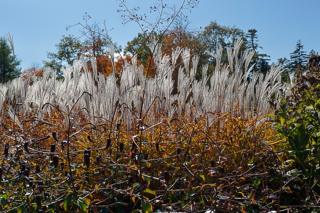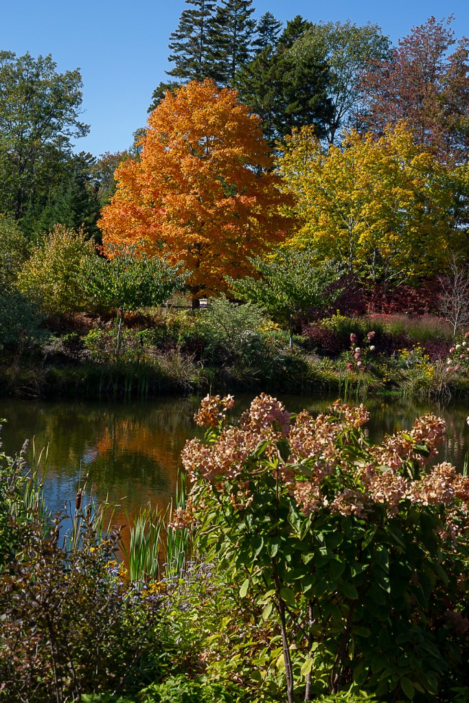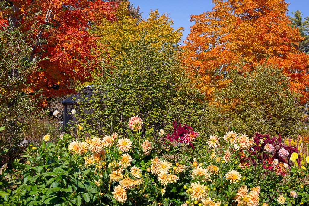It was a cool, sunny morning in mid October when I finally made it out to Coastal Maine Botanical Gardens. The breeze was light but cold enough to feel a chill in the shade. I had seen the gardens in three out of four seasons but never in the fall. I wasn’t sure if anything would still be blooming at the end of the season as my own garden was only a ghost of its former self. Determined to spend as much time as possible in nature and enjoy the fall foliage before the cold winter set in, I embarked on the journey anyway. I was surprised to see my trip to the coast was not in vain.