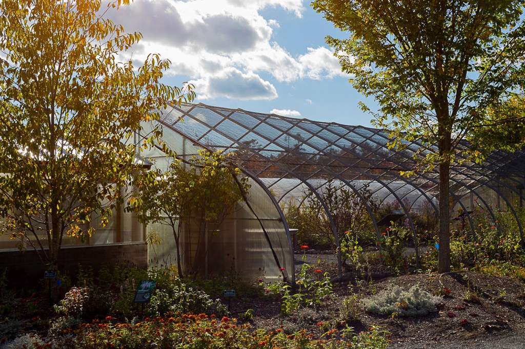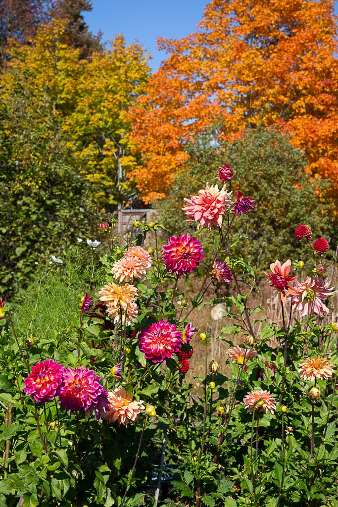 While many flowers had gone by and the butterfly house was closed for the season, the botanical gardens remained a colorful labyrinth of vegetation. The Dalias still bloomed in an array of vibrant colors agains the bright orange foliage on the surrounding trees. It was peak foliage at this point and a beautiful sight even outside the gardens. Wandering through the winding paths I took note of flowers still blooming to add to my garden next year. The dahlias will be a great addition.