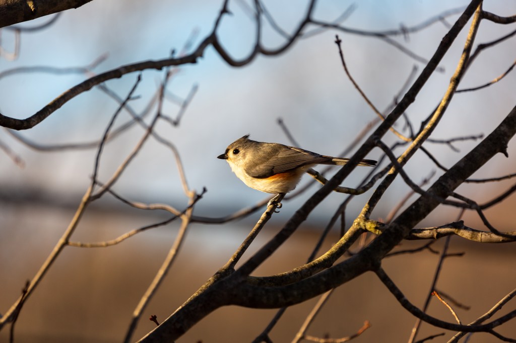 The tufted titmouse is almost as fast as the chickadee in the trees. I usually see them in pairs, like the chickadees, and they are almost always in constant motion. Hopping from branch to branch, they seem to dance around the tree until finding the perfect moment to dart in to the feeder. Then they are gone just as fast.